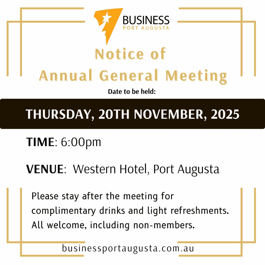 - A voice in support of commercial developments appropriate for the Port Augusta community;